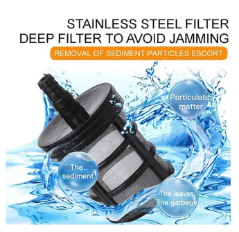 💧 Manguera con filtro de impurezas: úsala en baldes o directamente desde el grifo.